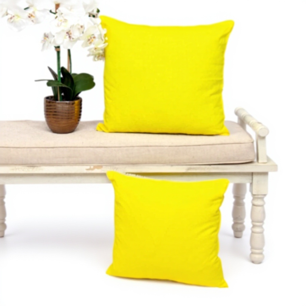 Ce coussin carré de 40,6 x 40,6 cm se distingue par sa couleur jaune unie et son tissu en coton de qualité. La housse est amovible grâce à une fermeture éclair pratique, facilitant son nettoyage. L’insert en polyester offre un maintien optimal tout en conservant sa forme dans le temps.