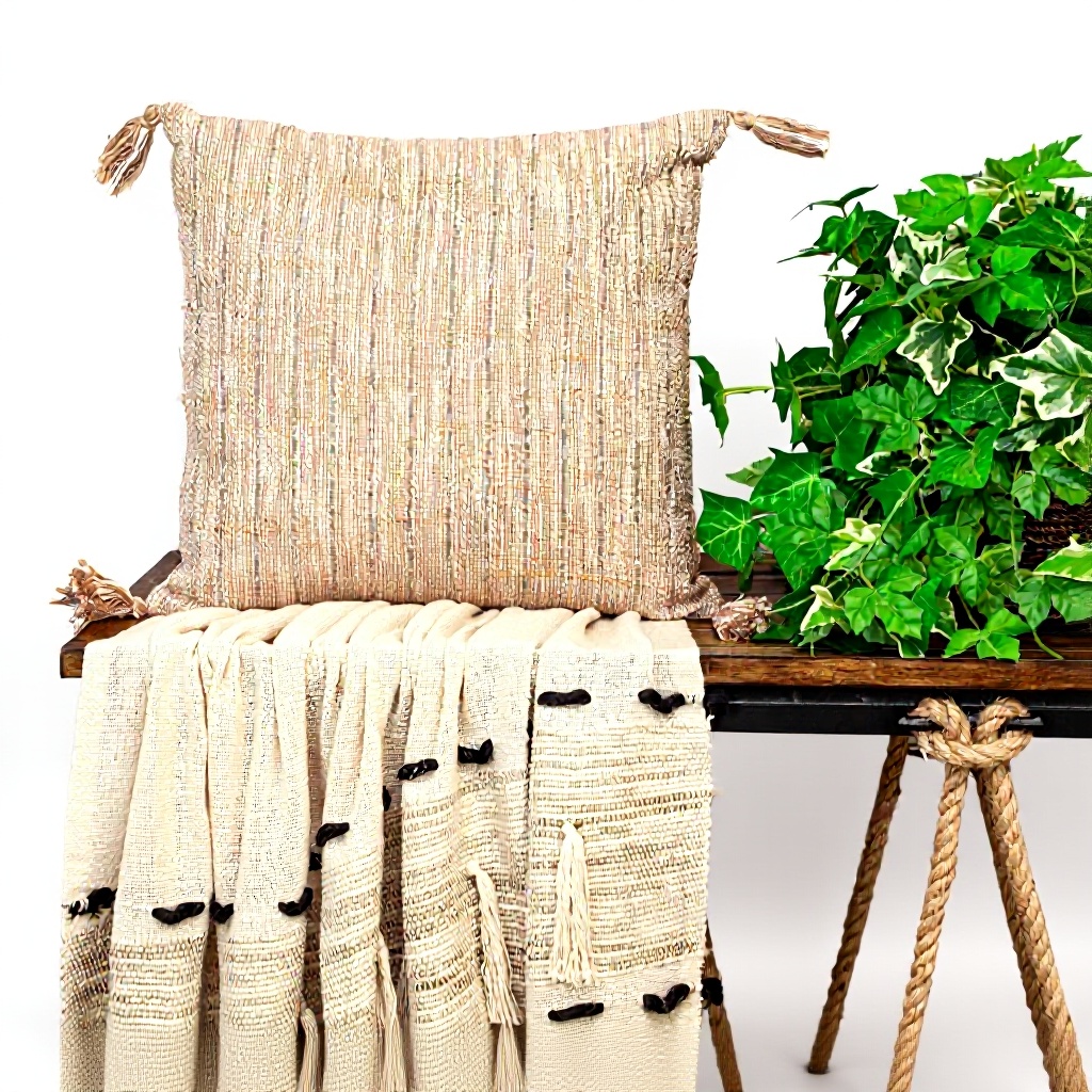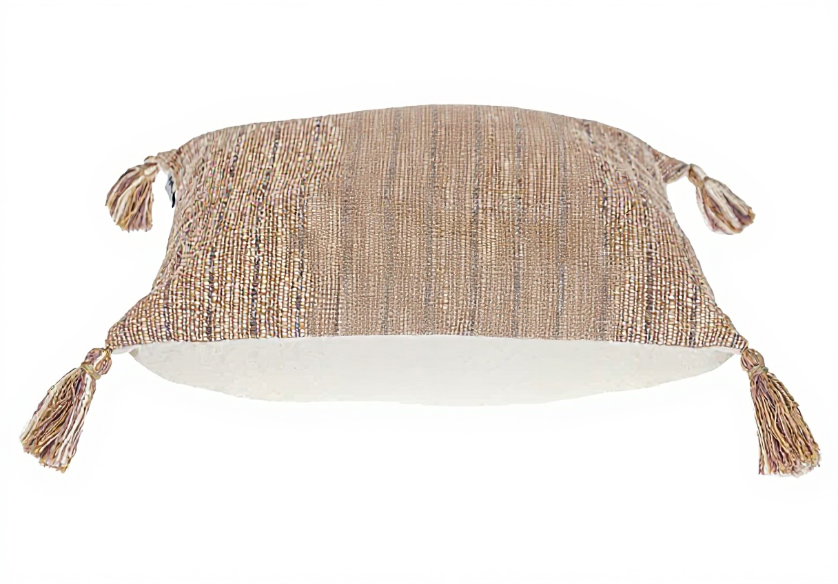 Ce coussin carré allie design et fonctionnalité avec ses rayures de transition dans une teinte marron élégante. Il est confectionné en coton tissé doux, offrant une texture agréable au toucher. La housse amovible et l’insert en polyester avec fermeture éclair facilitent l’entretien, tandis que les pompons décoratifs ajoutent une finition détaillée.